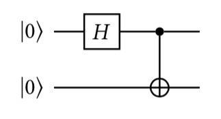 Para finalizar nuestro estudio de los sistemas de dos cúbits, vamos a mostrar cómo crear estados entrelazados con la ayuda de la compuerta CNOT. Consideremos el siguiente circuito: